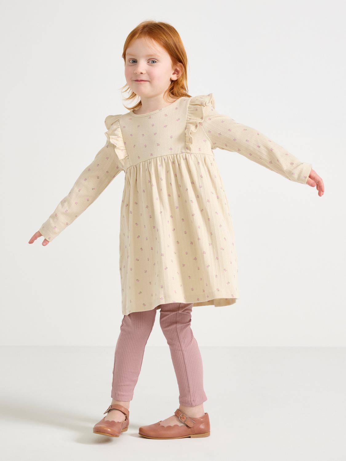 Långärmad klänning i mjuk bomull med pointelledesign och heltäckande mönster.