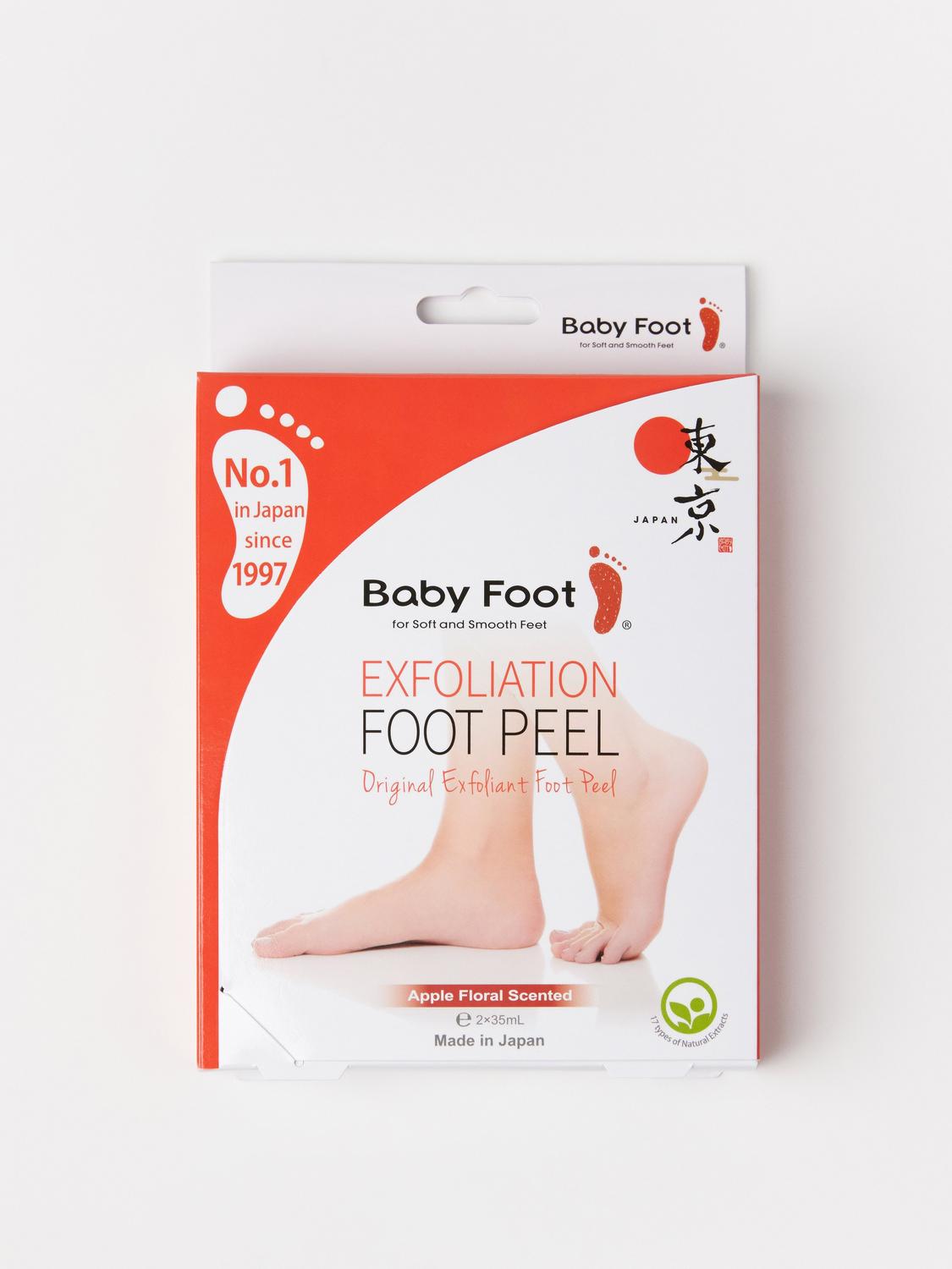 Baby Foot Exfoliation Foot Peel är exfolierande sockor som skonsamt avlägsnar döda hudceller på fötterna med hjälp av endast naturliga extrakt och fruktsyra. Torr och hård hud på fötter och hälar försvinner utan användning av fil eller hyvel och lämnar fötterna mjuka och återfuktade. Engångssockorna (strl. 36-45) innehåller gel med naturliga extrakt och fruktsyra, med mild doft av lavendel. Efter ca. 3-7 dagar kommer det yttersta hudlagret att lossna och fötterna börjar flagna. Riv inte av de döda hudcellerna med kraft, ta evt ett fotbad. Flagning kan pågå upp till 2 veckor. Resultatet kan variera. Upprepa behandlingen vid behov, med minst 2 månader mellan varje behandling. Rekommenderas inte för diabetiker, gravida eller ammande. Läs bruksanvisningen noga och följ den. Undvik kontakt med ögonen. Skulle detta inträffa, skölj ordentligt med vatten. Vid hudirritation, avbryt användningen/kontakta läkare. Förvaras oåtkomligt för barn. Undvik direkt solljus och extrema temperaturskillnader. Använd inte produkten om du har öppna sår på fötterna eller fotskador. Baby Foot innehåller naturliga extrakt och kan variera i färg, men det minskar inte effekten. Produkten må ej anvendas nära öppen eld. Rekommenderas inte för diabetiker och gravida. Undvik att gelen kommer på möbler, mattor, trägolv och kläder. Använd produkten omedelbart efter öppnandet.Upprepa behandlingen efter behov, med minst 2 månader mellan varje behandling.