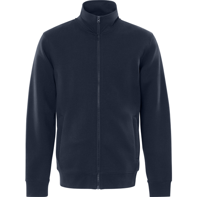 En mörk marinblå sweatshirtjacka i storlek 2XL från Beijer Byggmaterial. Jackan är en praktisk och bekväm överdel, perfekt för vardagsbruk eller arbete.