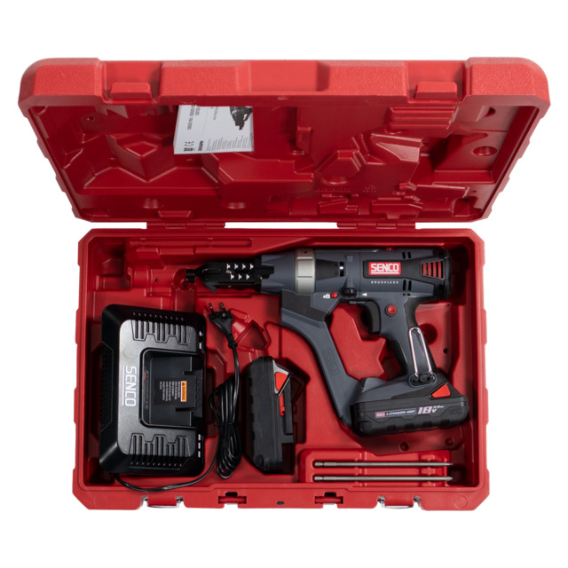 Denna gipsskruvautomat är en kraftfull maskin som drivs av ett 18V batteri och kan skruva gipsskivor med en hastighet på 5000 varv per minut. Den är lämplig för skruvar mellan 25 och 55 mm och gör arbetet snabbt och effektivt.