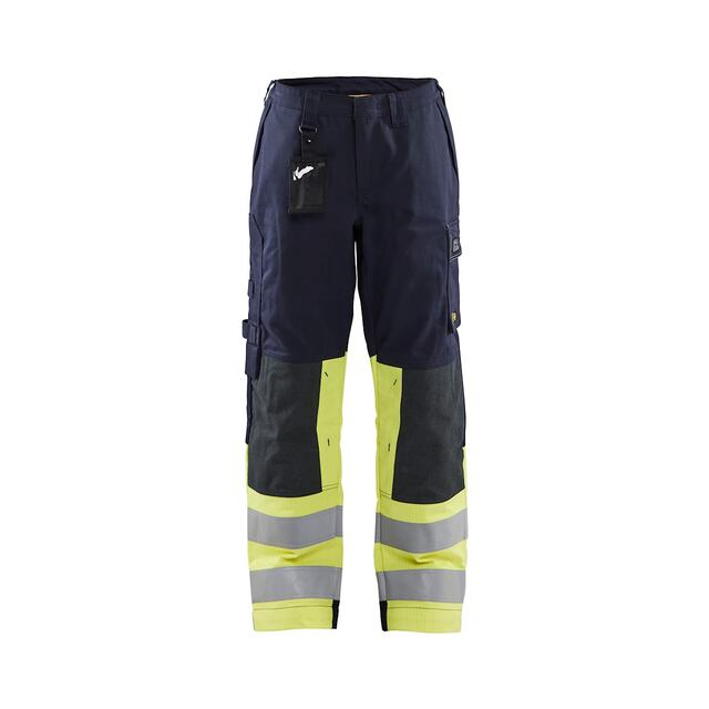 Dessa slitstarka multinormbyxor för dam är designade för arbete i krävande miljöer. De har en bekväm passform och är tillverkade i ett tåligt material med förstärkta knän.