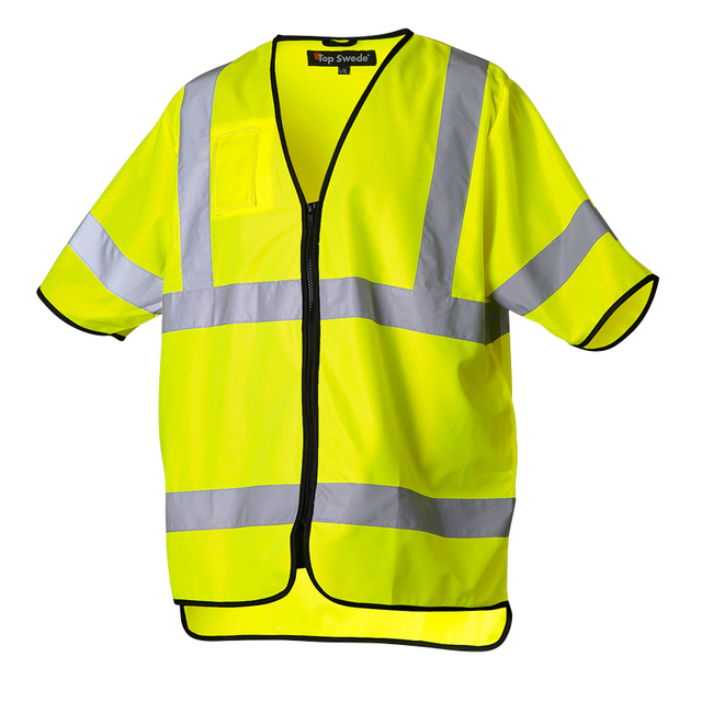 Denna gula varselväst i storlek XS/S är utrustad med dragkedja och en praktisk infällbar ID-kortsficka. Västen har även sidöppningar som underlättar åtkomsten till fickorna under västen. Tillverkad i slitstarkt 100 % polyester.