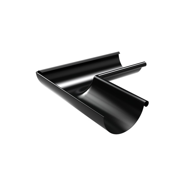 Denna rännvinkel är designad för att användas i invändiga hörn med en vinkel på 45 grader. Den är tillverkad i en elegant mattsvart färg. Rännvinkeln används för att effektivt leda vatten från en hängränna till en annan.