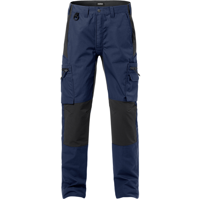Dessa stretchbyxor är designade för serviceyrken och tillverkade i ett slitstarkt material. Byxorna har en bekväm passform och är utrustade med praktiska fickor för verktyg och andra nödvändigheter. Den marinblå och svarta färgkombinationen ger ett professionellt utseende.