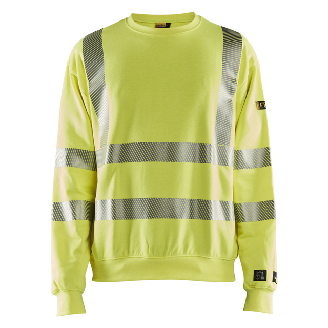 Denna varselgula sweatshirt är designad för att ge hög synlighet i riskfyllda miljöer. Den är tillverkad med segmenterade reflexer och ett bekvämt, borstat innermaterial. Sweatshirten är certifierad enligt flera standarder för att säkerställa säkerhet och komfort.