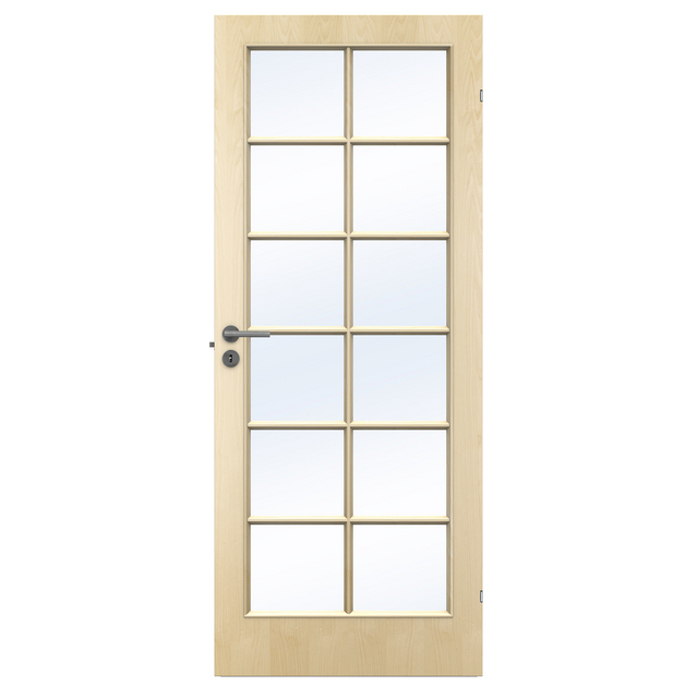 En stilren innerdörr med en slät yta och en lätt konstruktion. Dörren har ett fönster av härdat klarglas och passar bra i de flesta hem. Karmen till dörren säljs separat.