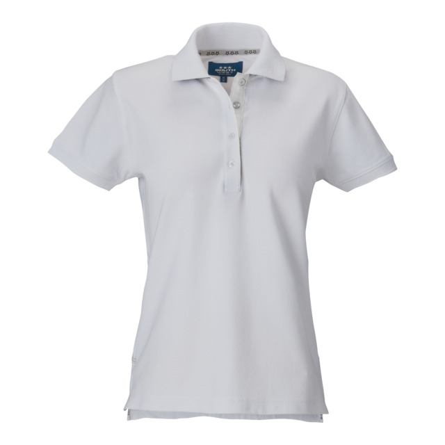 En röd pikétröja i storlek XS från Beijer Byggmaterial. Denna piké är designad med en feminin passform och har dekorativa detaljer som en längre knappslå med vita knappar och en diskret brodyr.