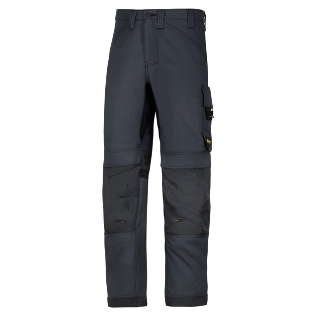 Dessa servicebyxor i stålgrått är designade med knäskyddsfickor för extra komfort och skydd under arbetet. Byxorna har en modern passform och är tillverkade för att tåla de flesta arbetsförhållanden.