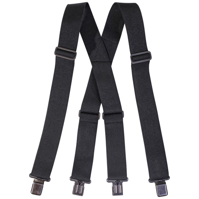 Vävda hängslen med resår baktill för ökad komfort och flexibilitet. De är utrustade med robusta clips i antikmässing för säker fastsättning. Hängslena är justerbara och nickelfria, vilket gör dem lämpliga för de flesta.
