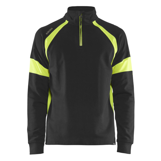 Denna sweatshirt är tillverkad i en blandning av polyester och bomull, vilket ger en bekväm och slitstark känsla. Den har ribbstickade muddar för en bra passform och borstad fleece på insidan för extra värme. Finns i varselfärgerna gul och orange för ökad synlighet.