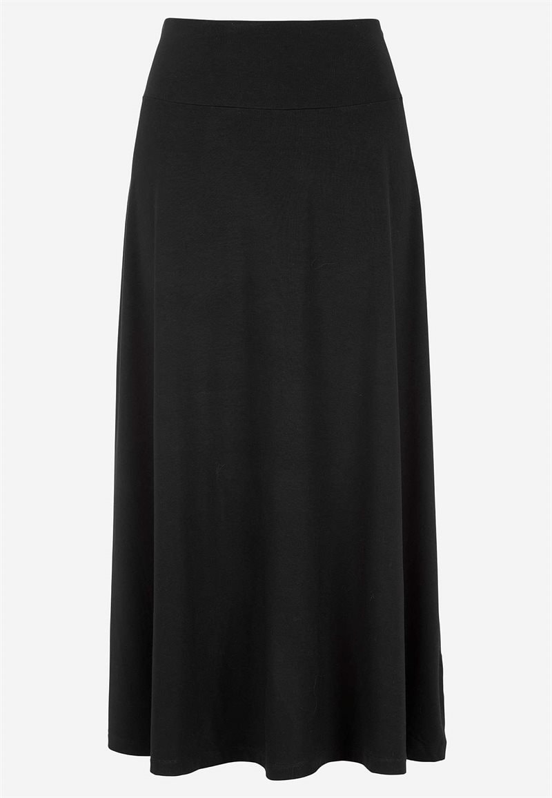 En lång, utsvängd kjol i mjuk och stretchig trikå. Kjolen har ett blommigt mönster och en bekväm resår i midjan. Den vida passformen ger ett fint fall och en feminin silhuett.