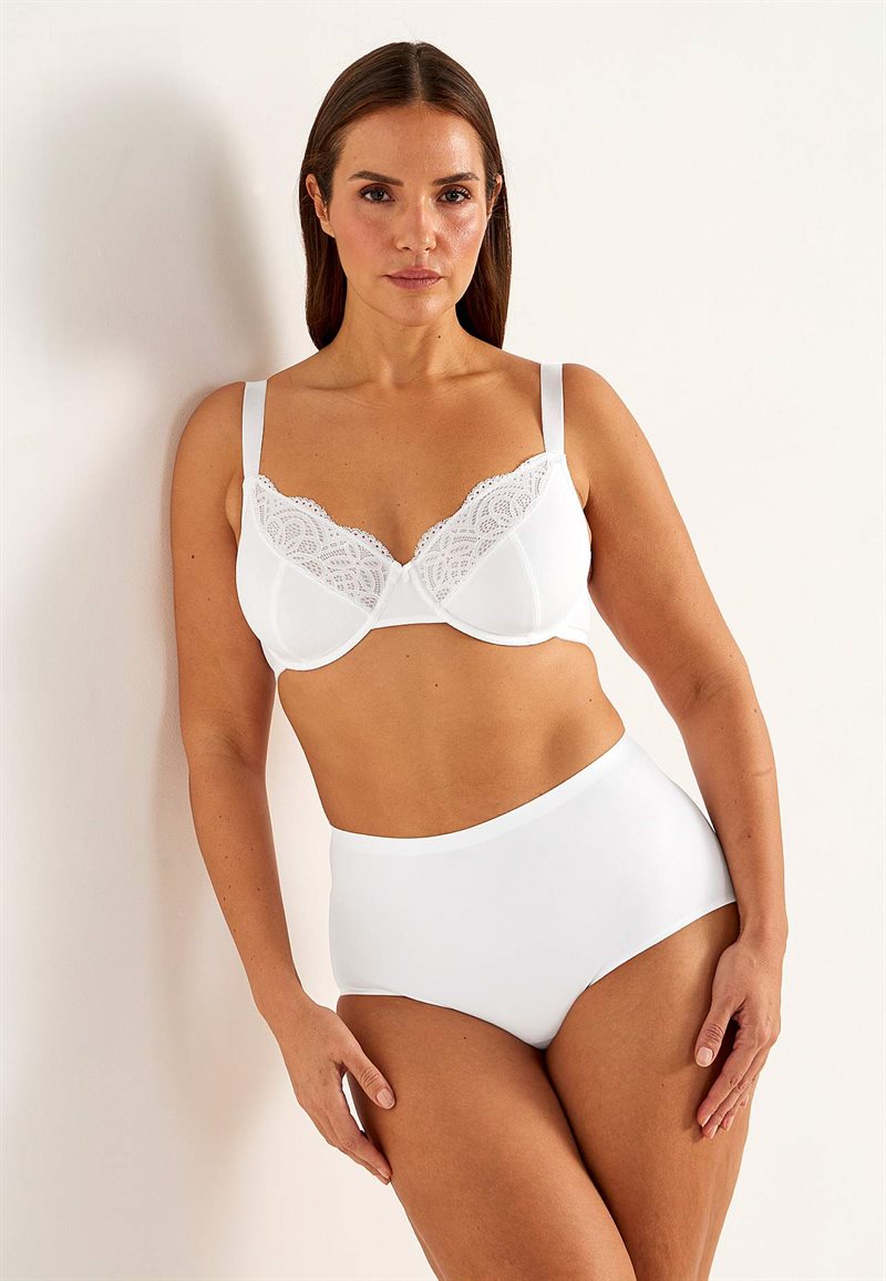En vacker spets-bh med bygel som ger stöd och komfort. Bh:n har en nätt design med formpressade spetskupor och tunt mesh-foder. Justerbara axelband och en diskret rosett fulländar looken.
