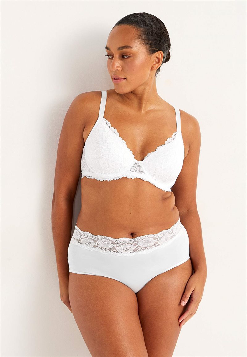 Denna vadderade bh med bygel har en klassisk och feminin look tack vare den vackra spetsen. Kuporna är formsydda för bästa passform och komfort. De breda, justerbara axelbanden och den två- eller treradiga knäppningen bak ger ett bra stöd.
