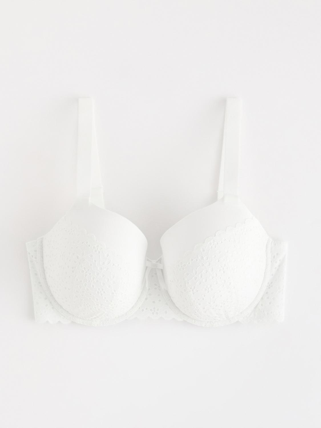 Bekväm T-shirt-bh med formpressade kupor och lätt vaddering som ger en slät silhuett. Breda, justerbara axelband, broderie anglais med vågig kant och en passform som sitter skönt hela dagen.