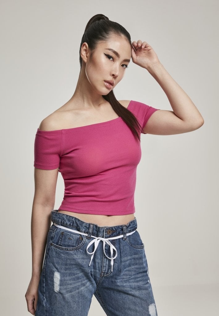 Denna ribbade bomullstopp för dam har en smickrande design med bara axlar och en mångsidig halsringning. Toppen är tillverkad i ett mjukt och stretchigt material som ger en bekväm passform. Finns i flera trendiga färger.