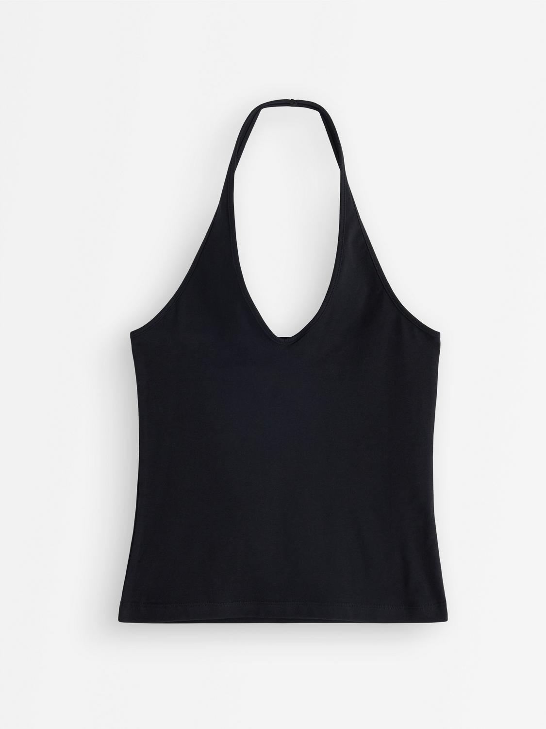Stilren halternecktopp i mjuk, stretchig bomullstrikå.
