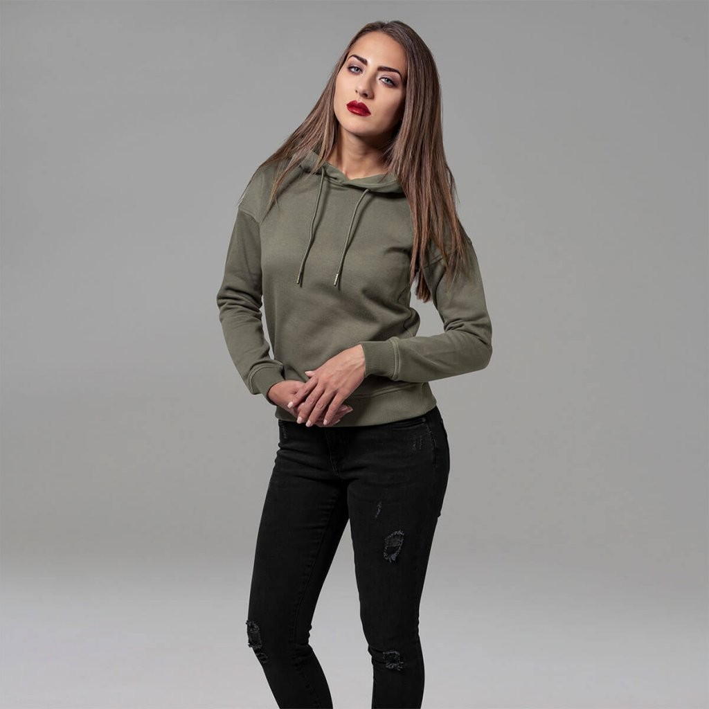 Alla stilsäkra kvinnor bör ha den här mysiga och bekväma ekologiska huvtröjan. Den har klassiska sweatshirt-egenskaper och en välsittande passform med breda muddar i ärmslut, nederkant och axlar, och den innovativa användningen av bomullsbaserat material som är skonsamt mot huden.