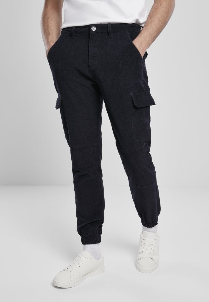 Dessa manchesterbyxor för herrar är tillverkade i ett mjukt, vävt tyg och har en sportig design med snedställda bensömmar. Byxorna har dragsko i midjan och hällor för livrem, samt två sidofickor fram. Resårband i bensluten ger en bekväm passform.