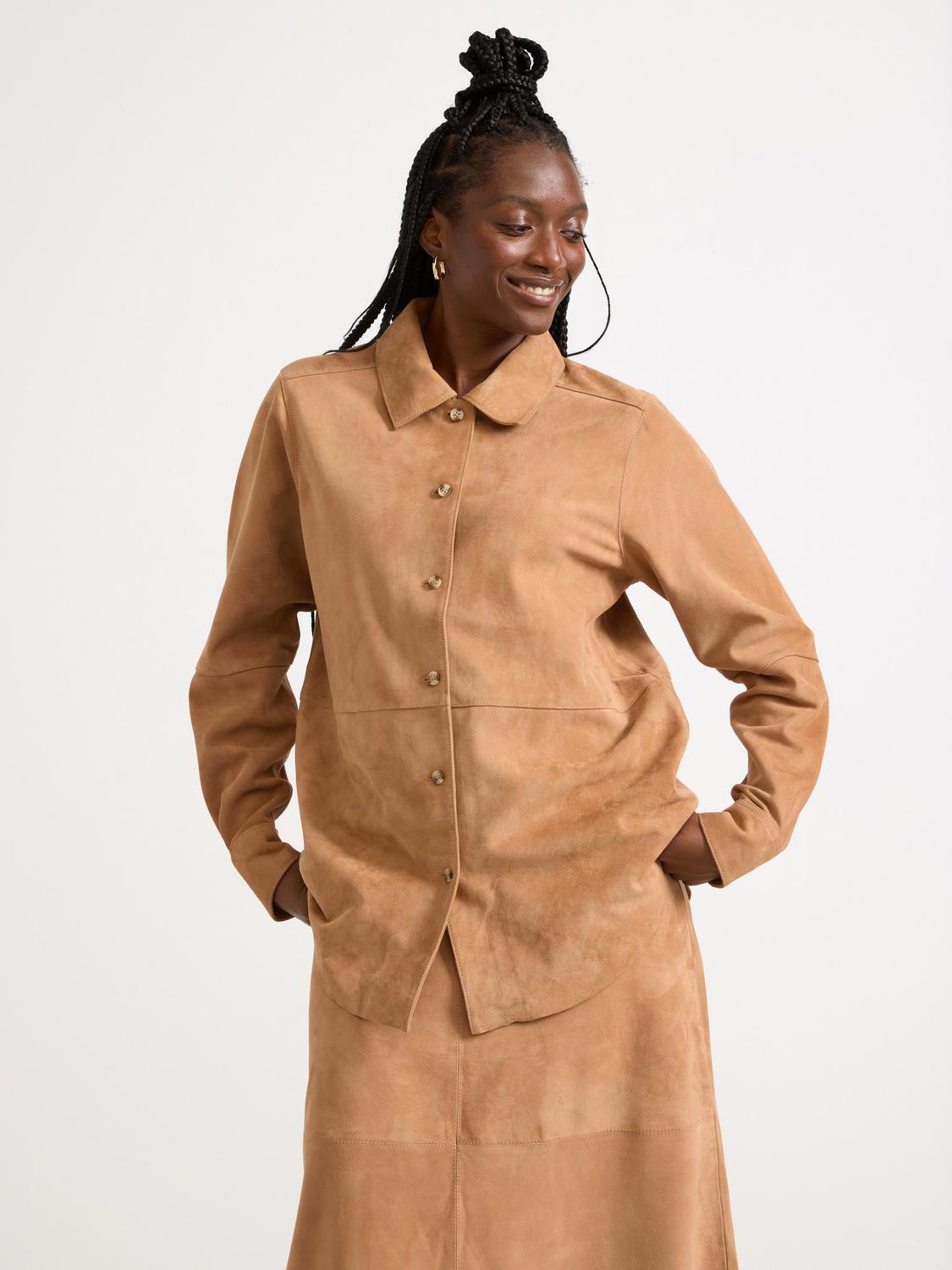 Den långa längden gör att skjortan kan bäras som en tunika över smala byxor eller leggings, och ger ett sofistikerat lager till din outfit.