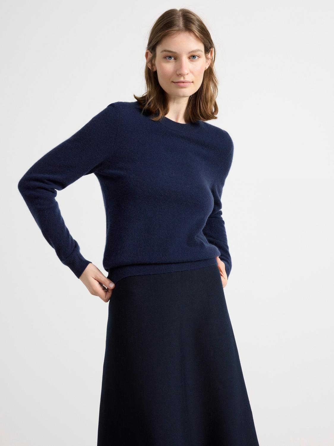 Denna långärmade, stickade tröja för damer är en mångsidig och elegant. Tröjan är designad med en avslappnad passform som sträcker sig längre ner på kroppen för en modern silhuett som kompletterar både byxor och kjolar.
