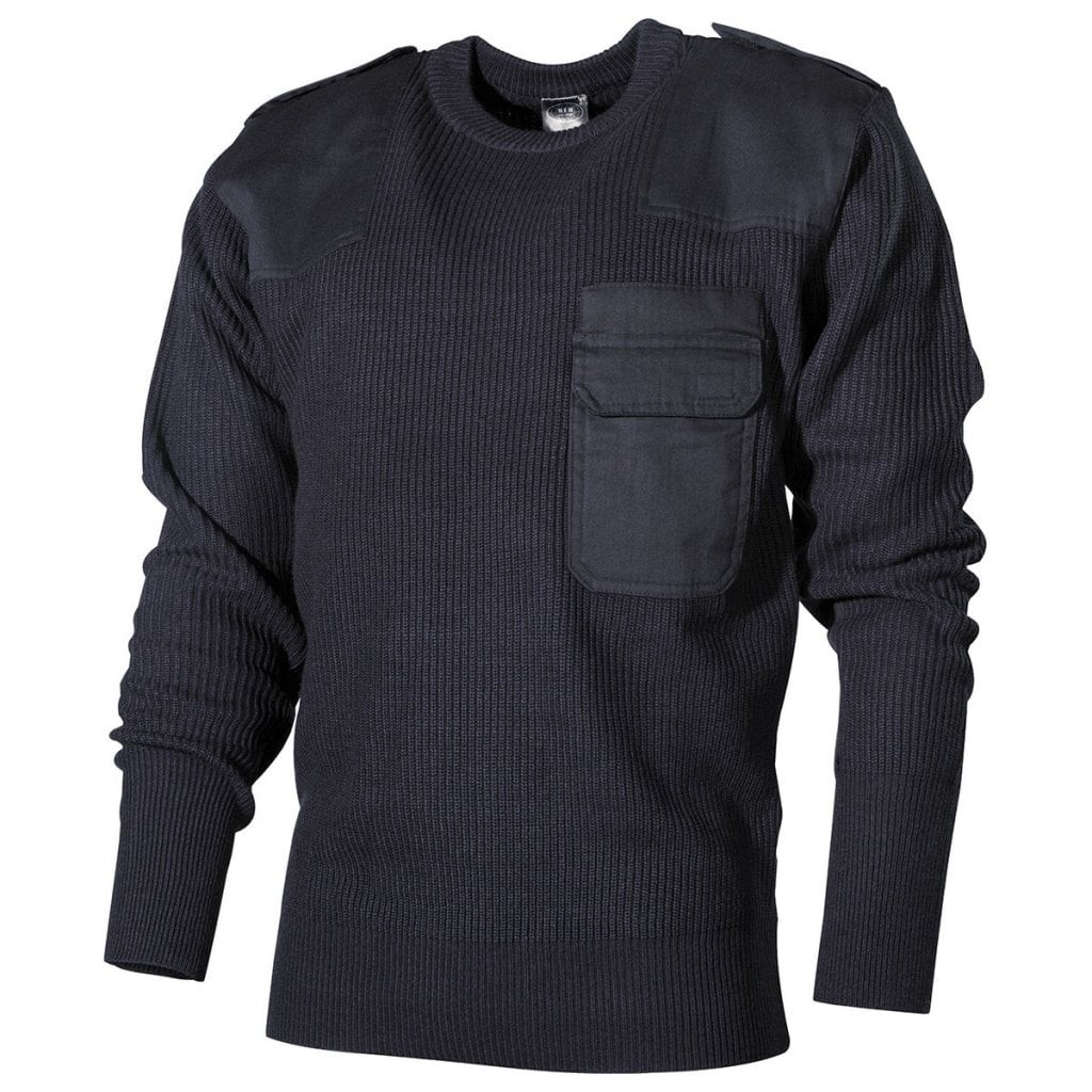 Denna stickade tröja för herrar har en klassisk design med förstärkta detaljer och en praktisk bröstficka. Tröjan är tillverkad i ett mjukt polyestermaterial och har bomullspatchar på axlar och underärmar för extra slitstyrka. Den finns i flera färger och storlekar för att passa olika stilar och kroppsformer.