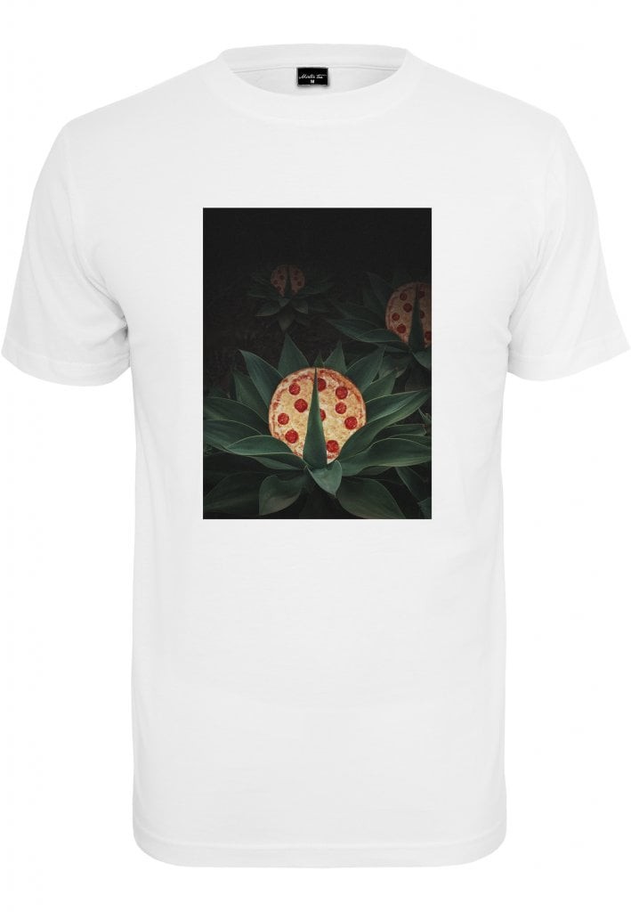 En vit t-shirt med ett tryck av en pizzabit på framsidan. Tröjan är tillverkad i 100% bomull och finns i flera storlekar. Perfekt för den som älskar pizza och vill visa det.