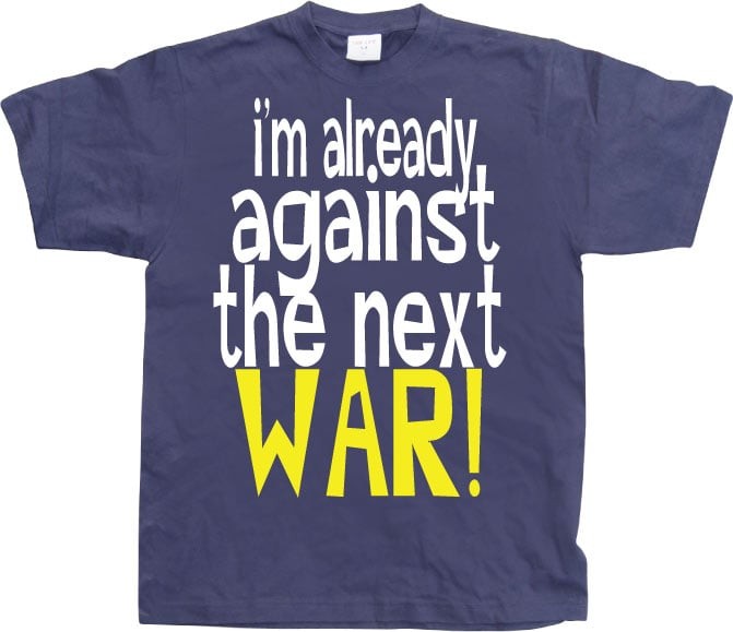 Denna T-shirt har ett tryck med texten 'Im Already Against The Next War'. Den är tillverkad i 100% bomull och finns i flera storlekar. Passar bra till vardags och är ett statementplagg.