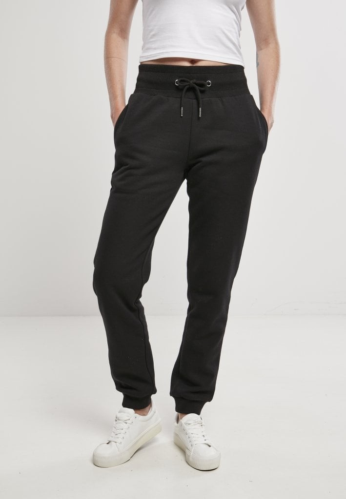 Dessa svarta joggingbyxor för dam är tillverkade i organisk bomull och har en hög, bred resår i midjan med dragsko. Byxorna har muddar i bensluten och praktiska sidfickor.