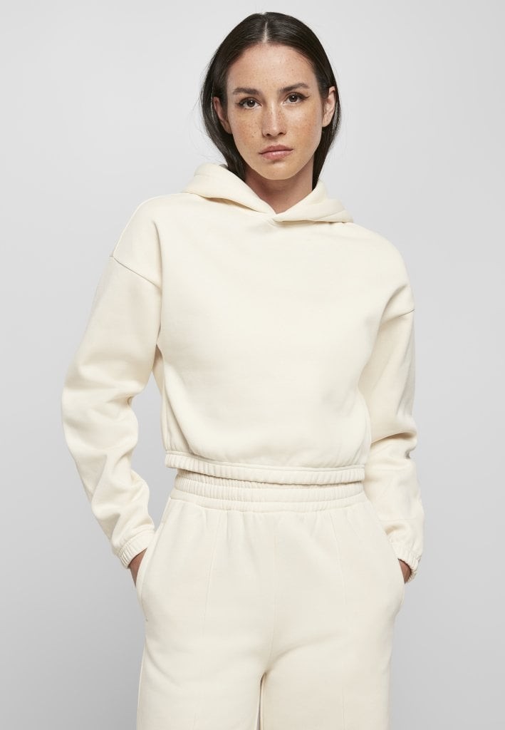 En kort hoodie för damer, designad med en avslappnad passform och nedhasade ärmar för optimal komfort. Den har resår i nederkant och ärmslut för att hålla värmen inne. Finns i flera färger och storlekar.