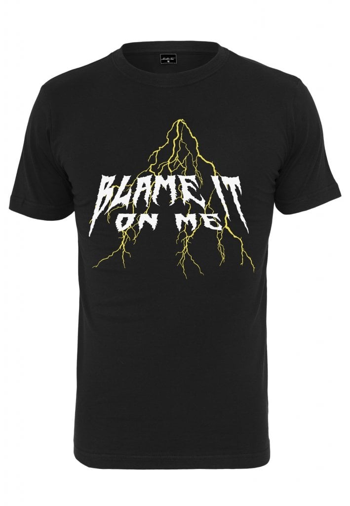 En svart T-shirt med texten 'Blame It'. T-shirten är tillverkad i 100% bomull och kommer från märket Mister-Tee. Denna T-shirt är ett bekvämt och avslappnat plagg för vardagsbruk.