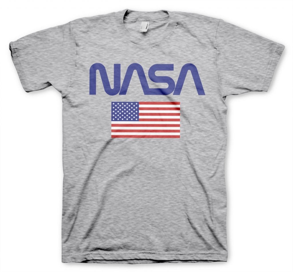 Denna gråmelerade t-shirt från NASA har en klassisk design med den amerikanska flaggan och NASA-logotypen. T-shirten är tillverkad i 100% bomull och har en bekväm passform. Perfekt för den som gillar rymden och vill visa sin amerikanska stolthet.