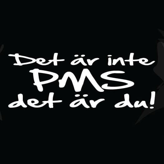 En svart T-shirt med ett kaxigt och humoristiskt tryck som säger "Det är inte PMS det är du!". Tröjan är tillverkad i mjuk bomull och har en bekväm passform, vilket gör den perfekt för både hemmadagar och avslappnade utekvällar.