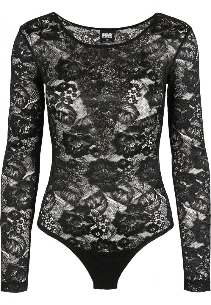Denna långärmade spetsbody för dam är tillverkad i ett stretchigt spetstyg som ger en elegant och sensuell look. Bodyn knäpps enkelt i grenen med tryckknappar och finns i flera storlekar. Materialet består av nylon och elastan, vilket ger en bekväm passform.