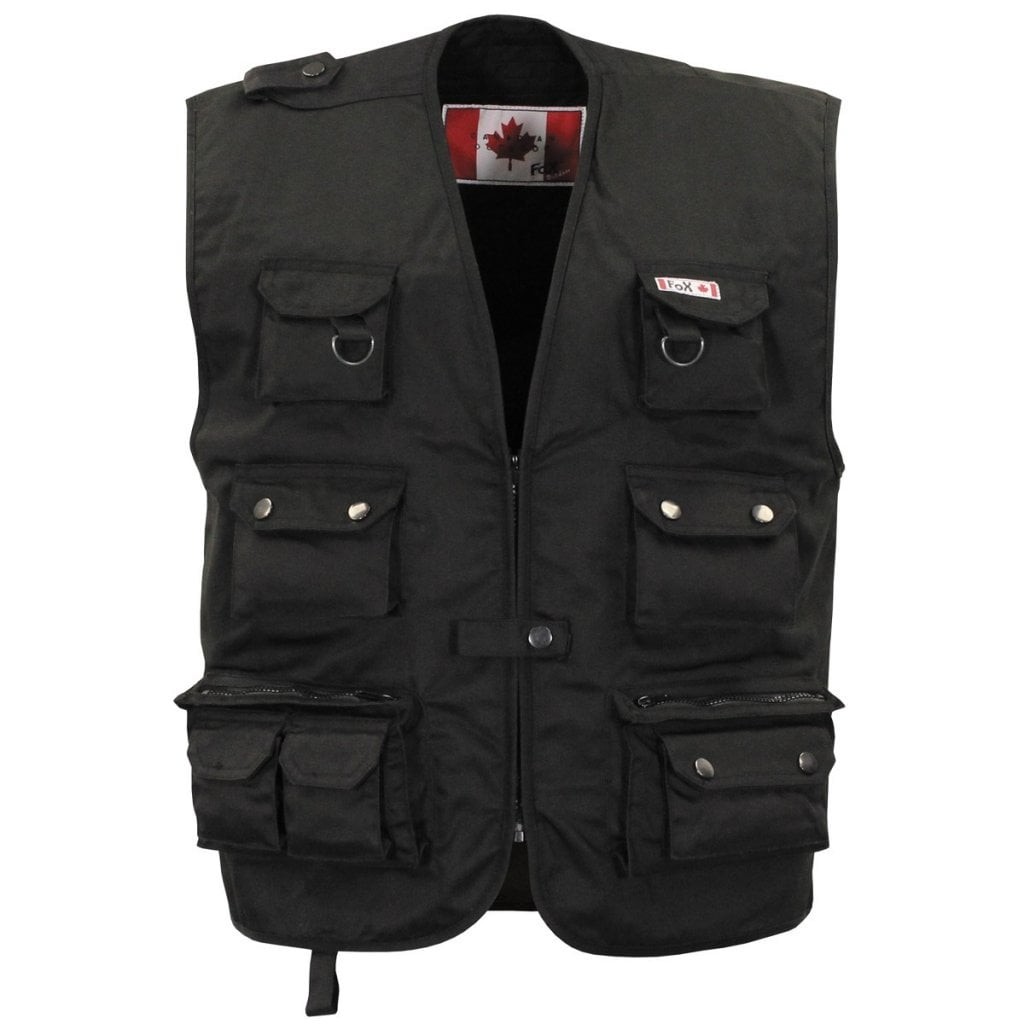 Denna quiltade väst har en dold dragkedja med tryckknappar och fyra fickor fram med klaffar och knappar. Den har även en innerficka med dragkedja. Västen är tillverkad i en blandning av polyester och bomull med foder i bomull och polyester.