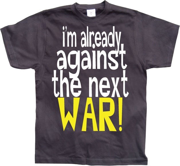 Im Already Against The Next WarHar du också känt den där känslan av att redan vara emot nästa krig innan det ens har brutit ut? Du är inte ensam. Vårt nya T-shirt är designad med ett humoristiskt och igenkännande budskap som många av oss kan relatera till. T-shirten är tillverkad av 100% bomull och finns i storlekarna S, M, L, XL och även XXL så att alla kan hitta sin perfekta passform. Den är perfekt för vardagsbruk eller för att skapa en avslappnad stil med jeans eller shorts. Med sitt enkla men kraftfulla budskap är denna T-shirt en perfekt gåva till dig själv eller någon annan fredsförespråkare. Det är ett bekvämt och stilrent sätt att uttrycka dina åsikter på ett subtilt sätt. Vår kollektion är känd för att ta ställning för viktiga frågor samtidigt som den behåller en lekfull och inspirerande känsla. Med detta plagg blir du en del av en rörelse som kämpar för fred och samhörighet. "Im Already Against The Next War" T-shirten är inte bara ett plagg, det är ett statement. Gör dig redo att visa världen dina värderingar på ett stilfullt och igenkännande sätt. Joina vår rörelse och visa att du också är emot nästa krig redan idag!