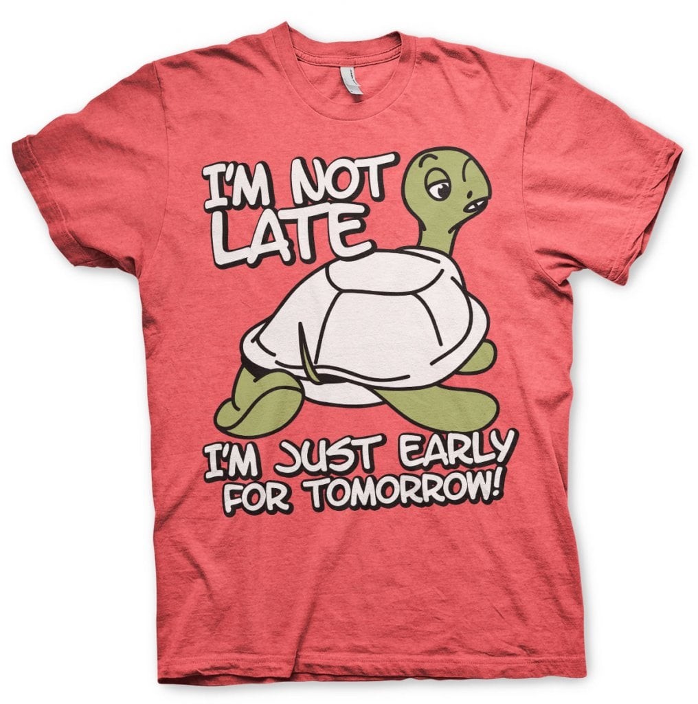 Denna t-shirt är för dig som alltid är 'lite' sen, men hellre ser det som att du är tidig för imorgon. T-shirten är gjord av 100% bomull och finns i flera storlekar.