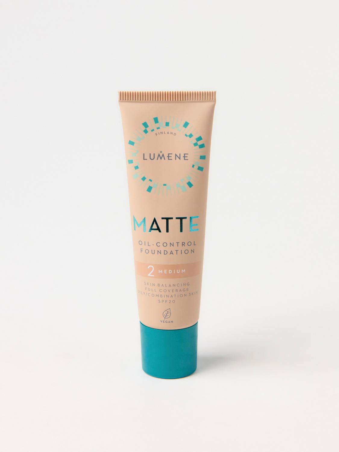 Lumene Matte Oil-Control Foundation är en flytande foundation som ger en matt och fräsch finish. Den är speciellt anpassad för fet och blandad hud och innehåller ingredienser som minskar glansighet och synligheten av porer. Produkten har även solskyddsfaktor 20.
