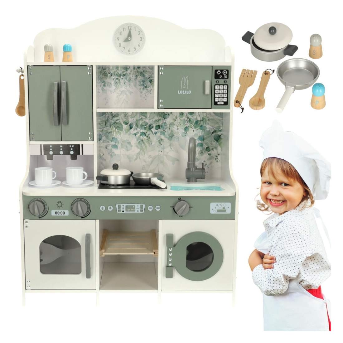 Detta barnkök i trä med tillbehör är den perfekta leksaken för små kockar som älskar att utforska och skapa i köket. Med sin robusta konstruktion och realistiska design erbjuder detta kök timmar av fantasifull lek och lärande. Tillverkat av högkvalitativ MDF och plast, är det både hållbart och säkert för barn från tre år och uppåt. Barnköket fungerar inte bara som en underbar leksak utan också som en stilfull inredningsdetalj som passar in i alla rum.