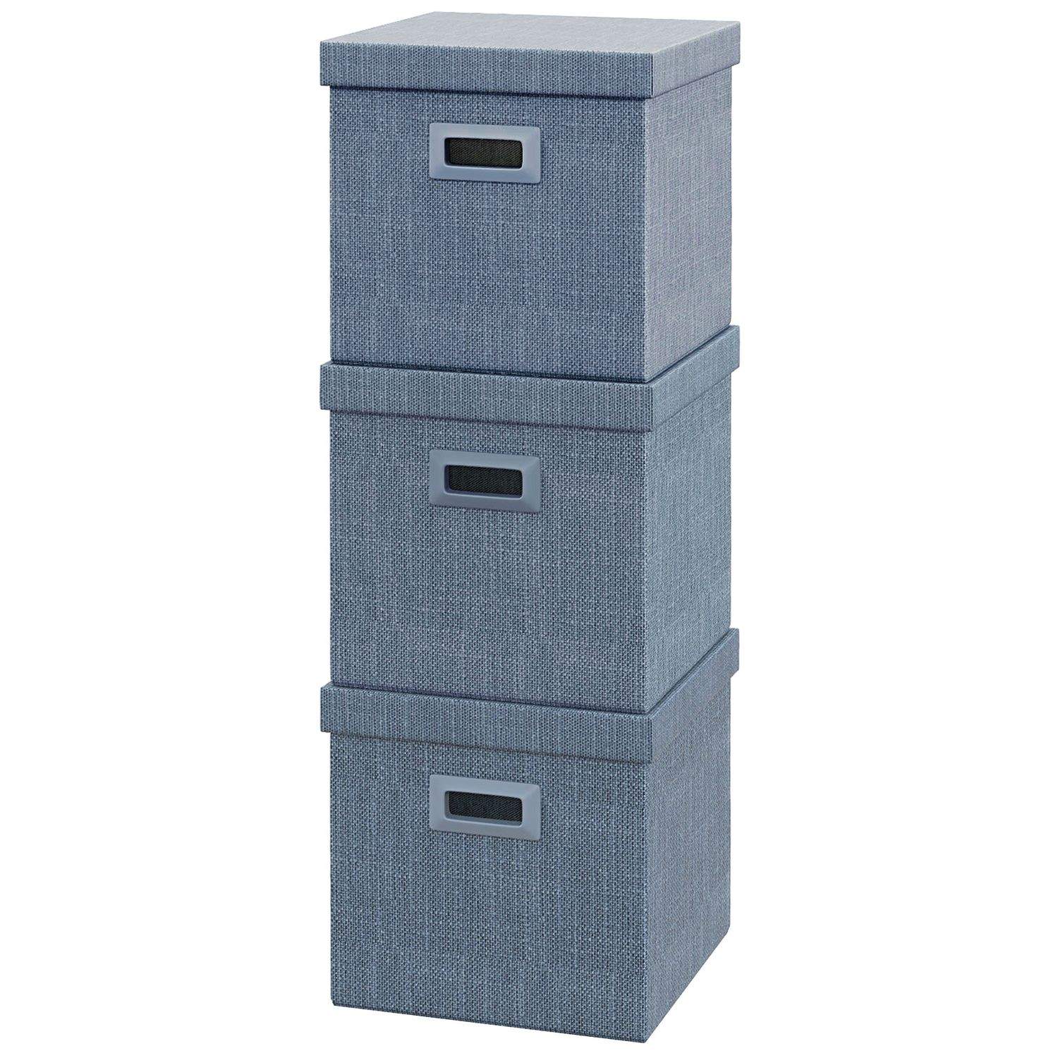 Grå förvaringslådor med lock, set om 3 i linne