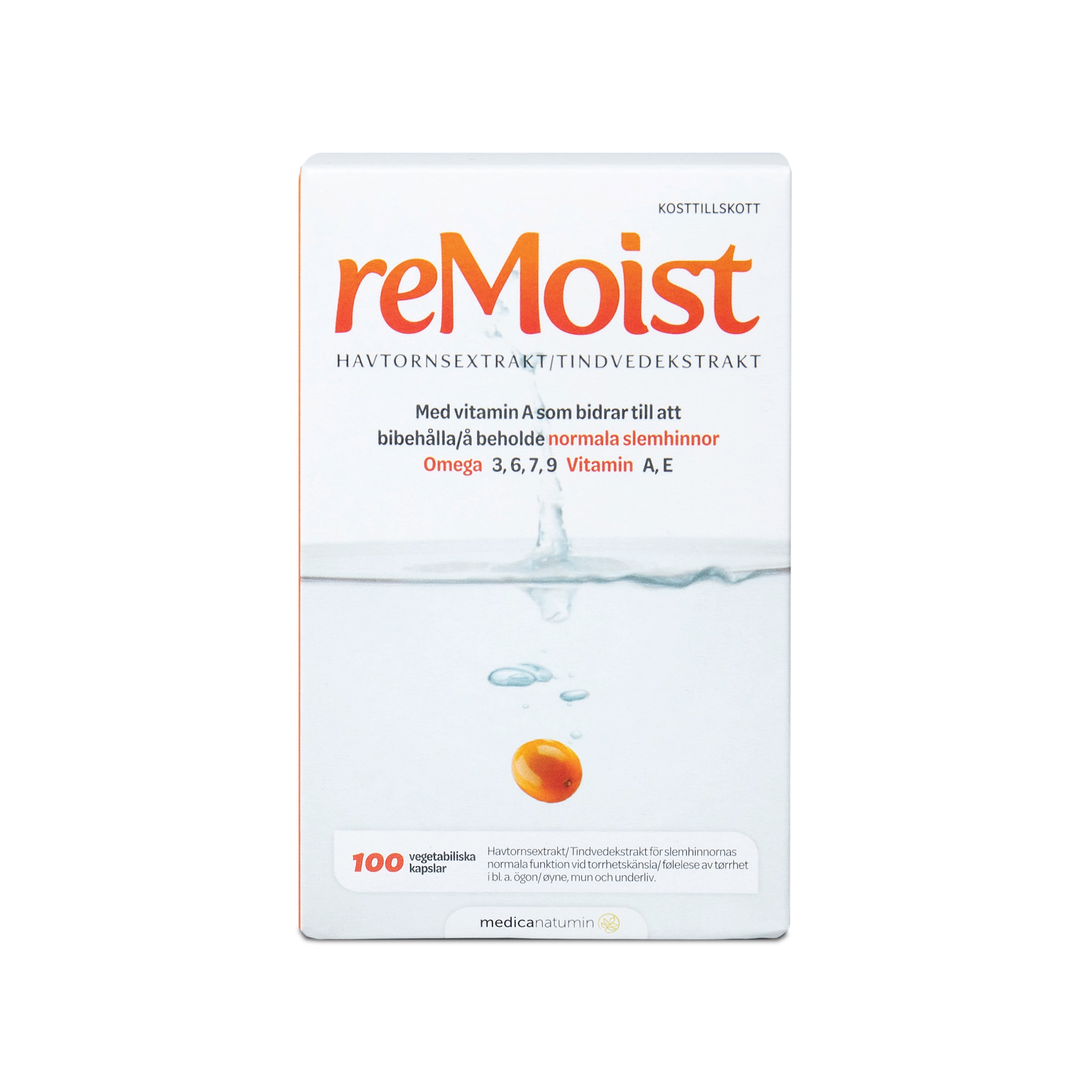 ReMoist är ett kosttillskott som innehåller havtornsextrakt, rikt på omega-7 fettsyror samt omega-3, -6 och -9. Havtorn innehåller även karotenoider (provitamin A) och E-vitamin. Vitamin E bidrar till att skydda cellerna mot oxidativ stress, medan vitamin A bidrar till att bibehålla normala slemhinnor och hud.
