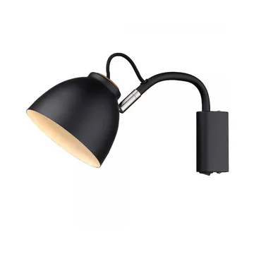 Halo Design Nivå är en stilren vägglampa i svart, med en diameter på 16 cm. Den passar perfekt som stämningsbelysning i sovrummet eller som läslampa vid sängen.