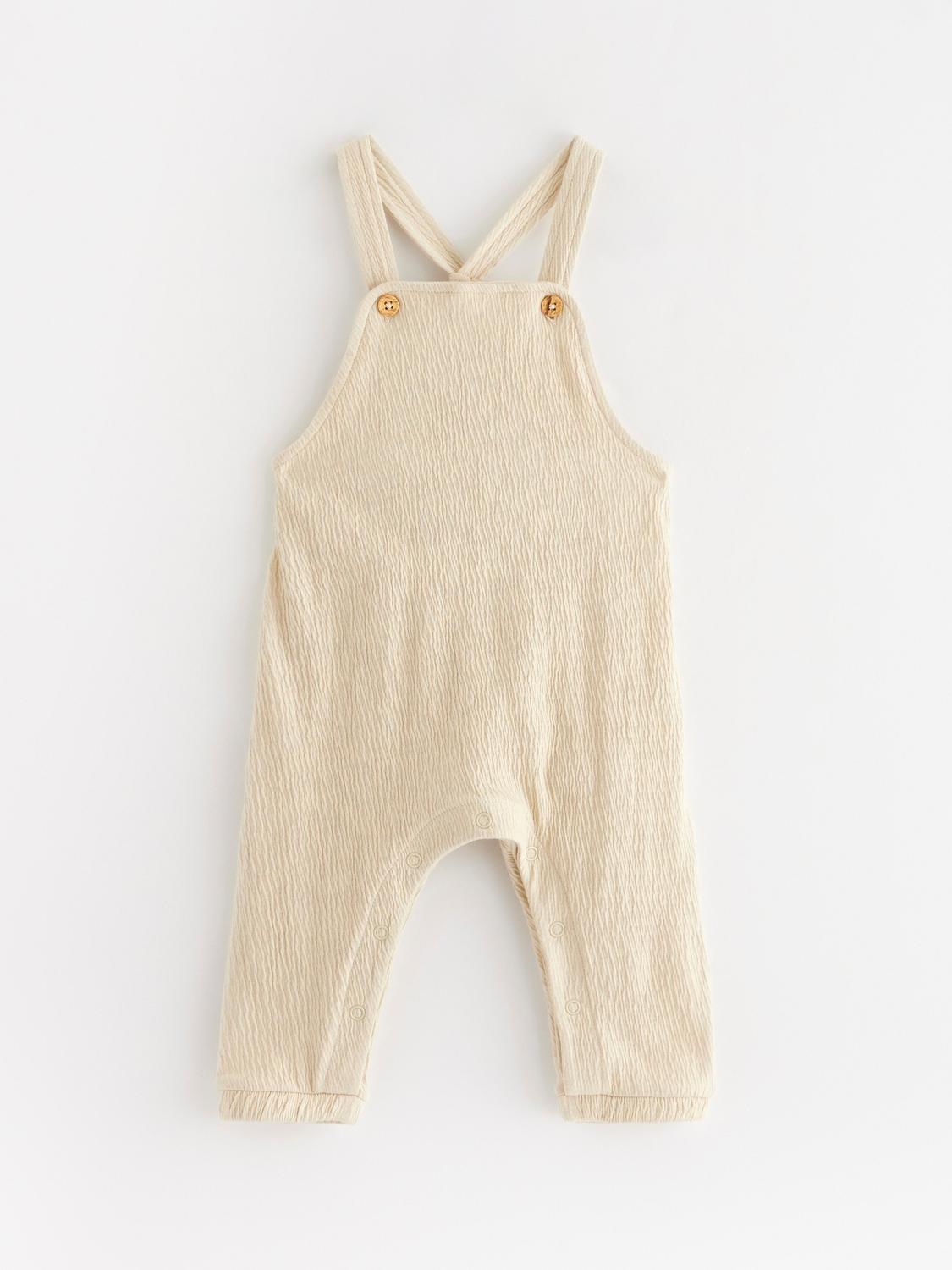 Mjuka och bekväma byxor för baby tillverkade i en skön bomullsblandning. Byxorna har en praktisk resårmidja som gör dem lätta att ta på och av. Perfekta för lek och mys.