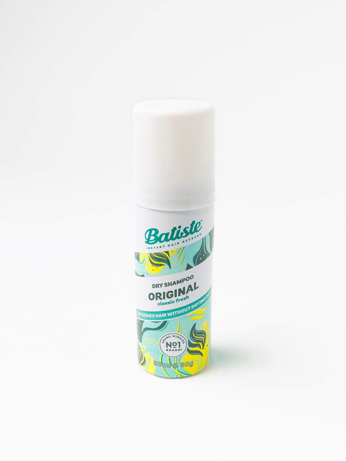 Batiste Original är ett klassiskt torrschampo med en behaglig doft som gör håret rent och fräscht. Det här är ett torrschampo som inte bara doftar gott, utan även ger volym och struktur – inga fler dåliga hårdagar. Batiste Original rengör och fräschar upp håret utan att lämna vita pulverrester. Den här praktiska miniflaskan är perfekt att ta med på resan, i handväskan eller i gymväskan för en snabb uppfräschning närhelst du behöver. 50 ml SE VARNING: Använd i ett välventilerat område och undvika direkt inandning. Medvetet missbruk i form av att koncentrera och inhalera innehållet kan vara skadlig eller livshotande. Undvik att spraya i ögonen. Använda ej på skadad eller irriterad hud. Sluta använda produkten om hud eller hårbotten blir irriterad. Sök läkare om irritationen kvarstår. Använd enbart enligt instruktioner. Ej för intimhygien. FARA: Extremt Brandfarlig Aerosol. Tryckbehållare: Kan explodera vid upphettning. Förvaras åtskilt från värme, gnistor, öppen eld, varma ytor eller andra antändningskällor. Rökning förbjuden. Spraya ej mot öppen eld eller andra antändningskällor. Får inte punkteras eller brännas, inte heller efter bruk. Skydda mot solljus. Får inte utsättas för temperaturer över 50°C. FÖRVARAS OTILLGÄNGLIGT FÖR BARN.