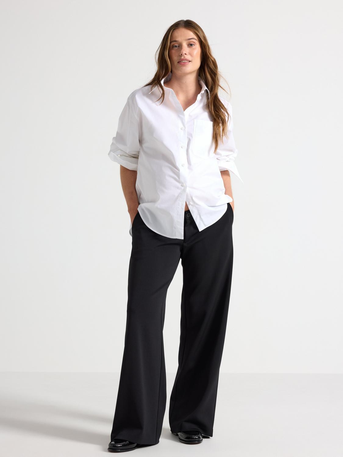 Denna klänning är designad med den växande magen i åtanke, vilket ger extra utrymme och komfort. Det mjuka och stretchiga materialet gör den perfekt för både vardag och mysiga hemmakvällar. Den enkla designen med rak halsringning och långa ärmar gör den lätt att matcha med olika accessoarer.