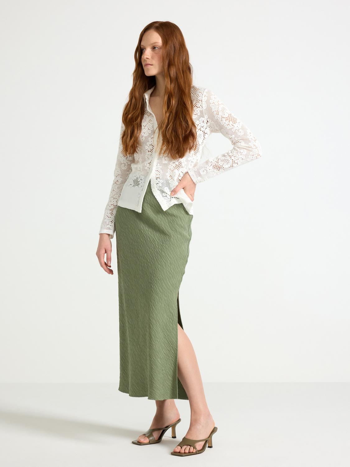 En mjuk och skön maxikjol i bomullstrikå, perfekt för lek och mys. Kjolen har en resårmidja som gör den enkel att ta på och av, och våder som ger den en fin siluett.