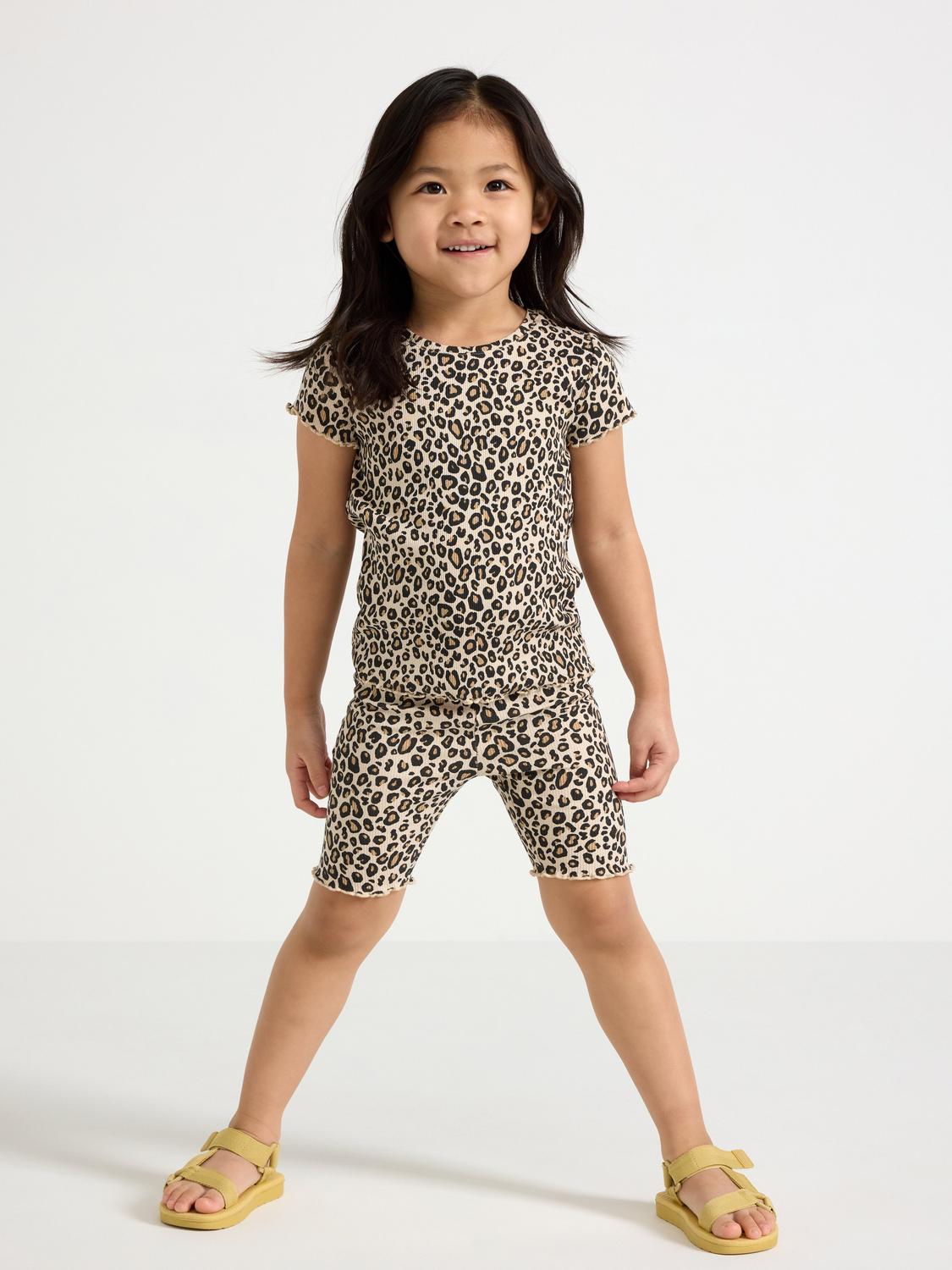 Mjuka och sköna cykelbyxor i bomullstrikå, perfekta för lek och bus. Byxorna har en resårmidja som gör dem enkla att ta på och av.