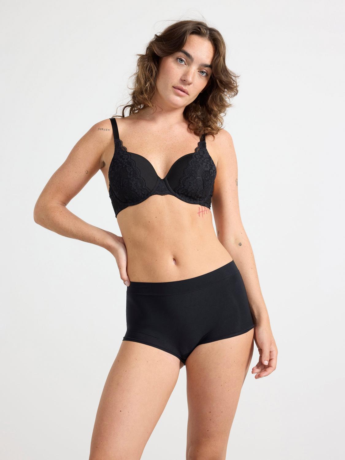 Mjuk, bekväm stringtrosa i bomullsblandning med ett högt skuret ben.