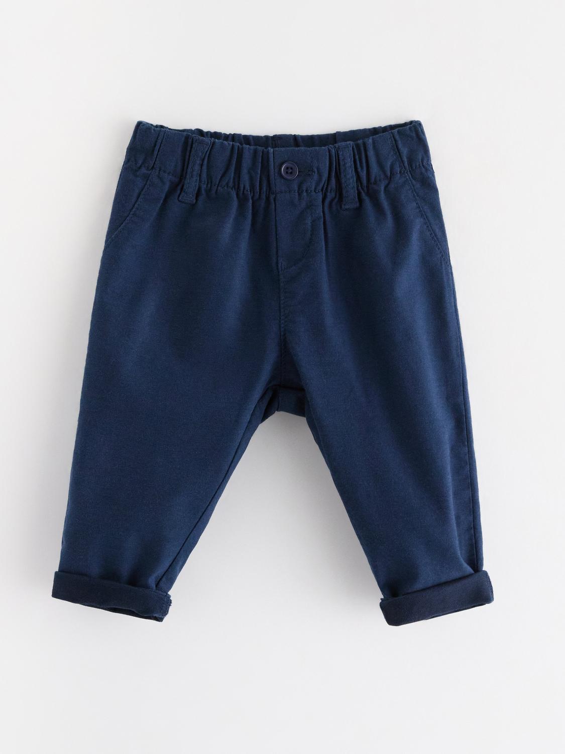 Bekväma byxor i bomullsväv med avslappnad passform, resårmidja och elastiska benslut.