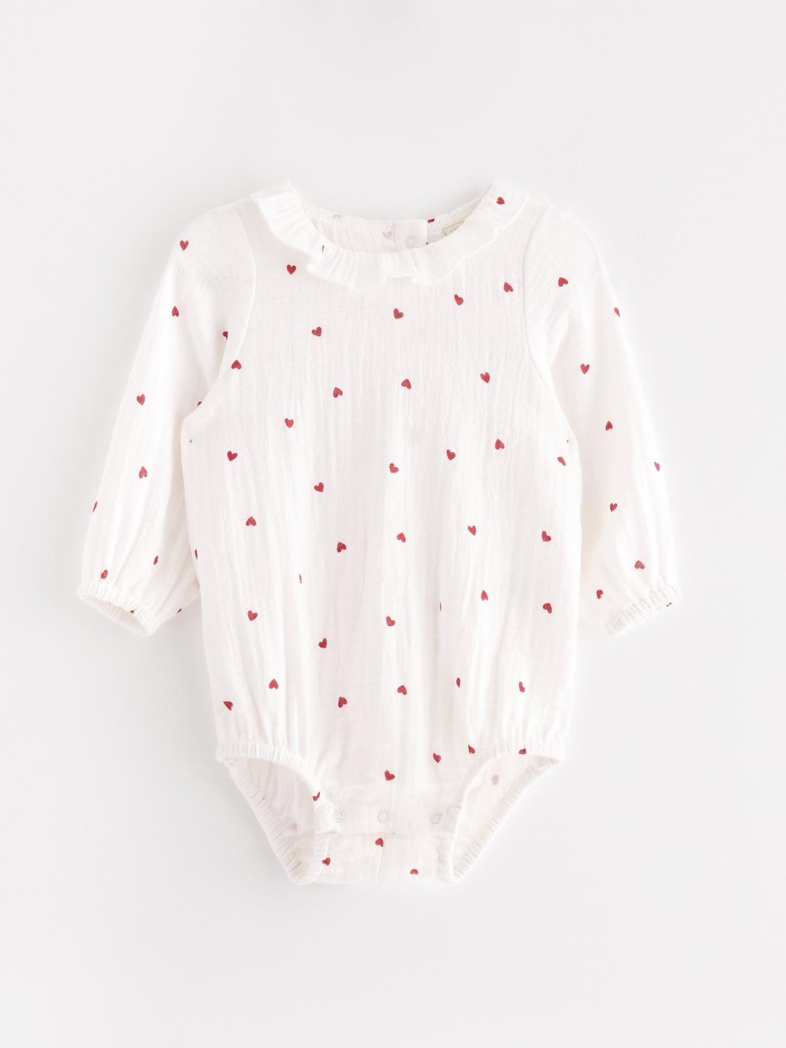 En söt och bekväm klänning för de allra minsta, tillverkad i mjuk bomull med ett fint blommigt mönster. Klänningen har långa ärmar och en avslappnad passform, perfekt för lek och mys.