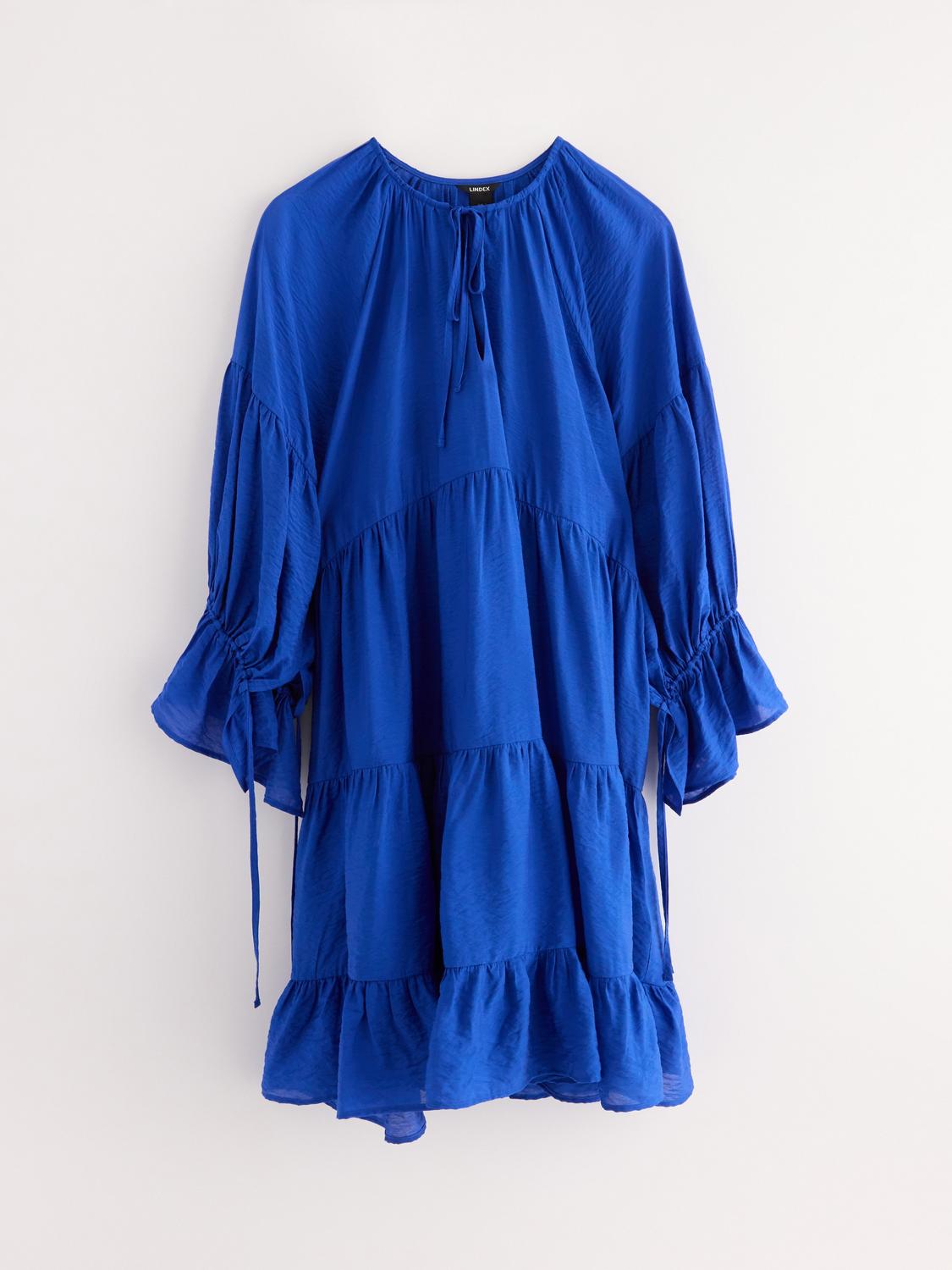 Miniklänning med volanger och knytdetaljer i hals och ärmar.